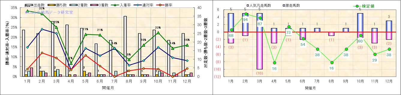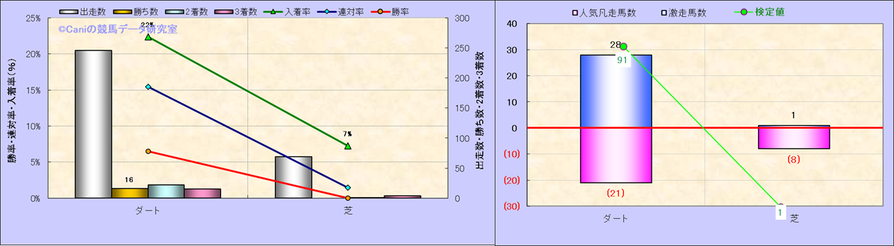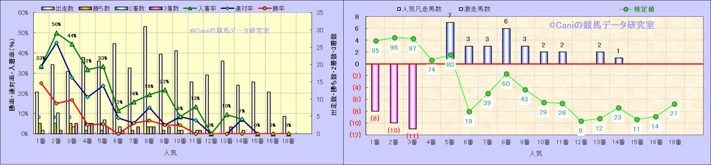 人気凡走馬:1-3番人気で着外、激走馬:5-18番人気で入着 |