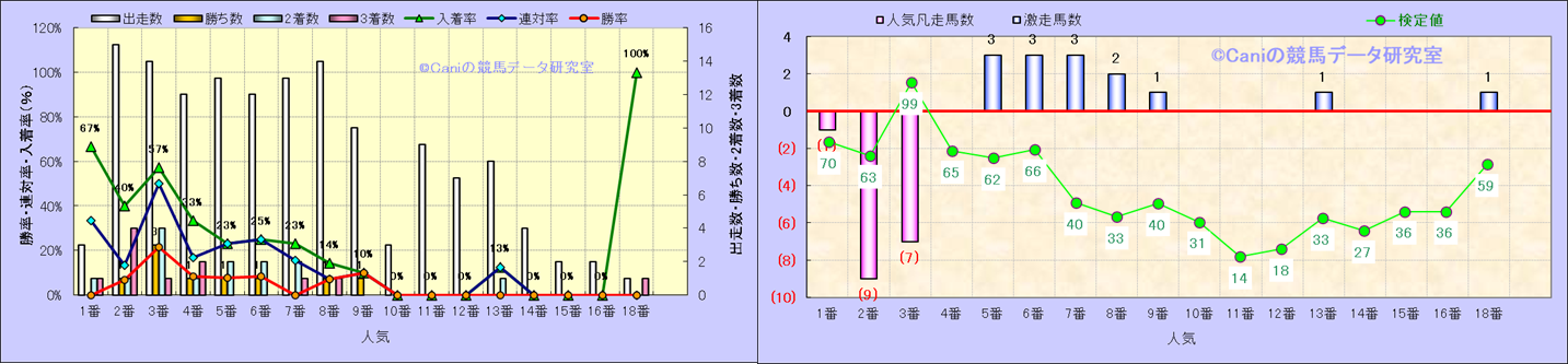 人気凡走馬:1-3番人気で着外、激走馬:5-18番人気で入着 |