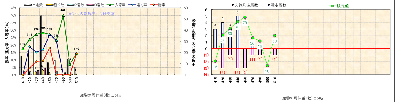 牡産駒の体重別成績-近3年- |