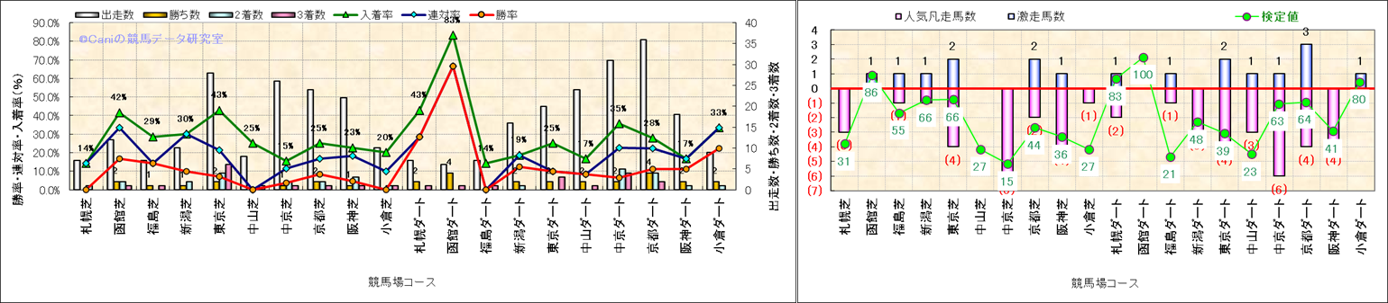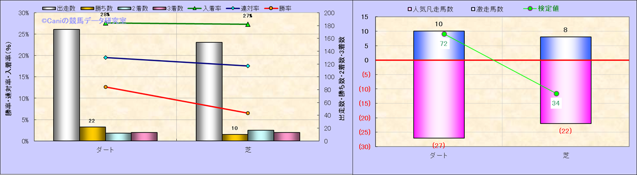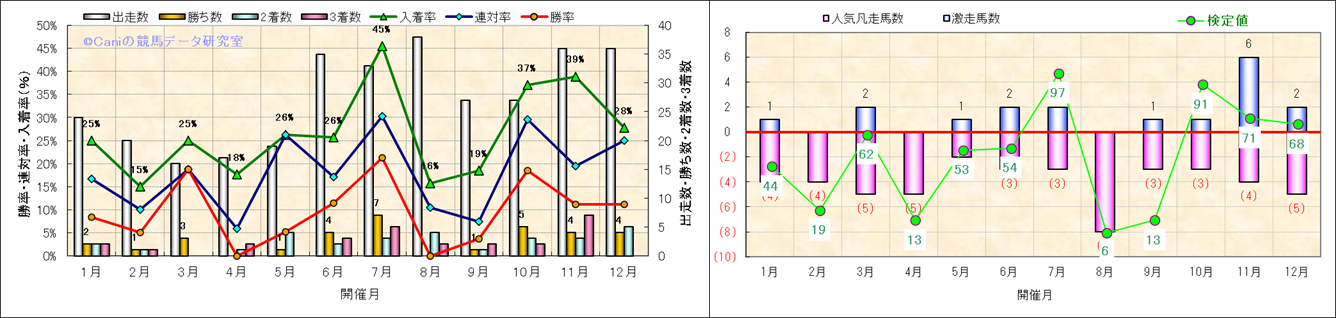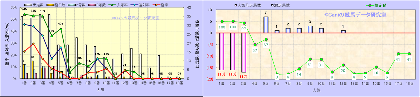 人気凡走馬:1-3番人気で着外、激走馬:5-18番人気で入着 |