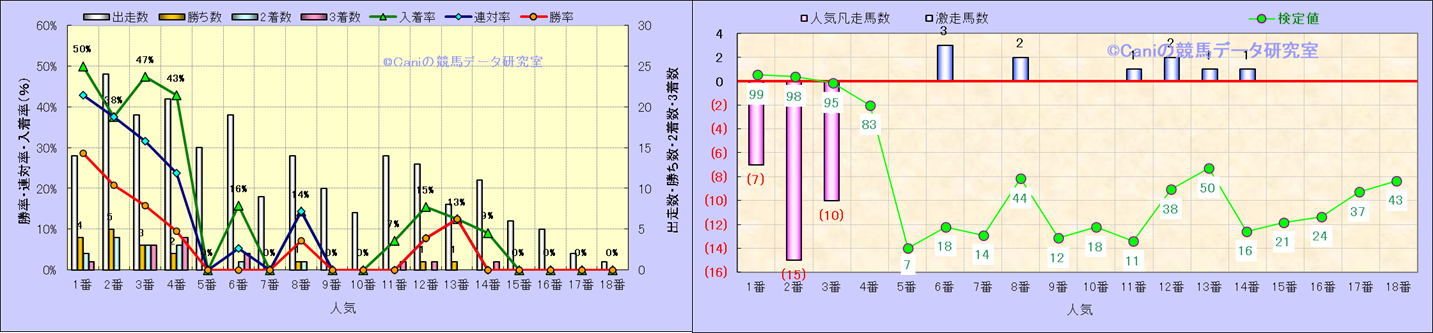 人気凡走馬:1-3番人気で着外、激走馬:5-18番人気で入着 |