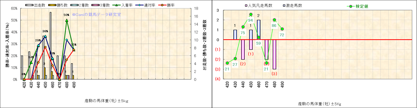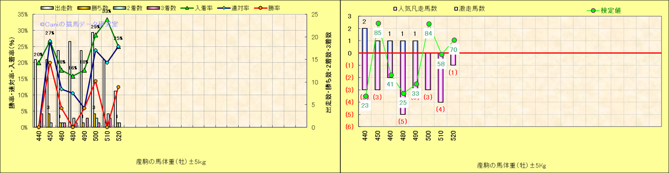 牡産駒の体重別成績-近3年- |