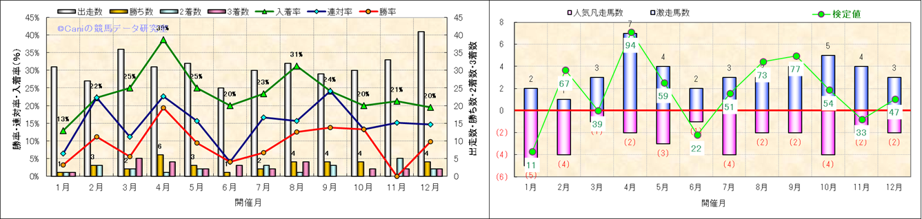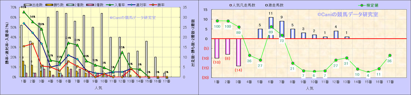 人気凡走馬:1-3番人気で着外、激走馬:5-18番人気で入着 |