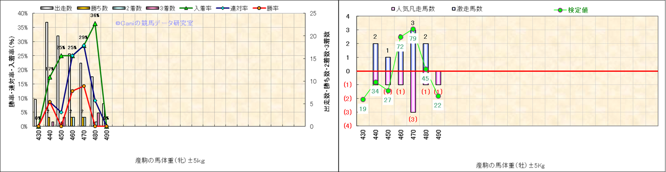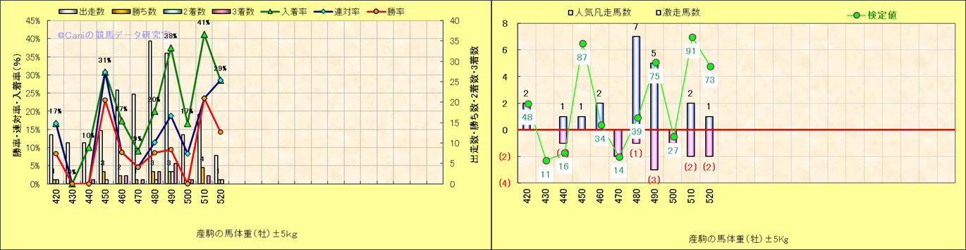 牡産駒の体重別成績-近3年- |