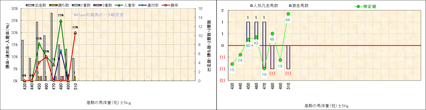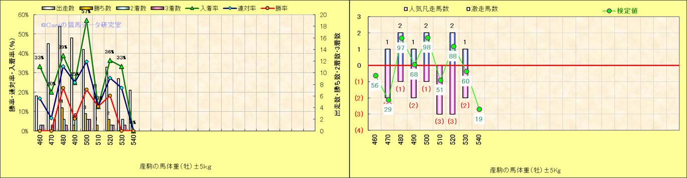 牡産駒の体重別成績-近3年- |