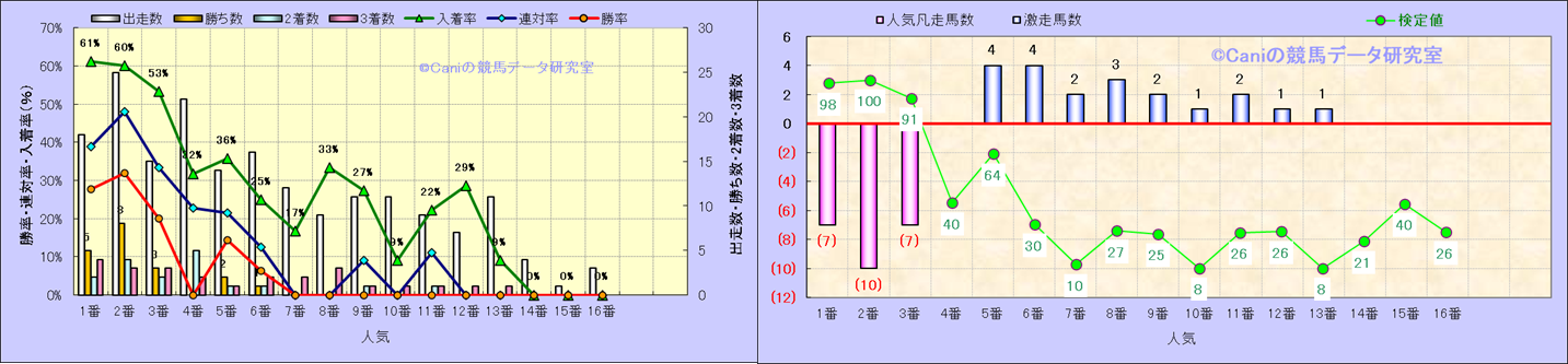 人気凡走馬:1-3番人気で着外、激走馬:5-18番人気で入着 |