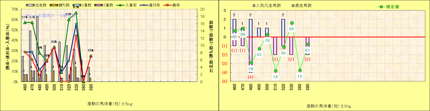 牝産駒の体重別成績-近3年- |