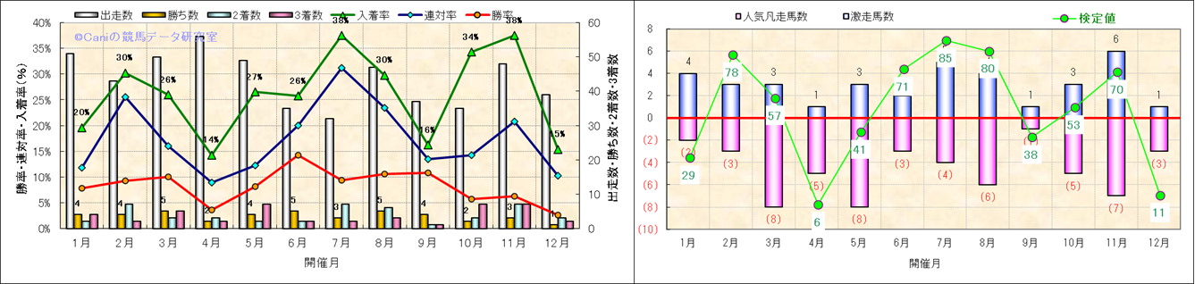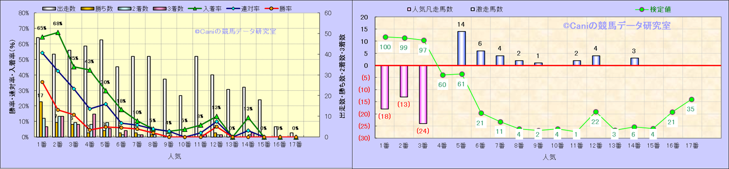 人気凡走馬:1-3番人気で着外、激走馬:5-18番人気で入着 |