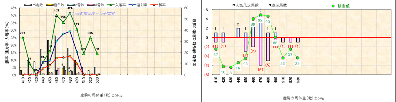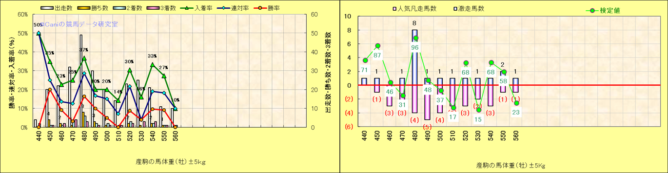 牡産駒の体重別成績-近3年- |