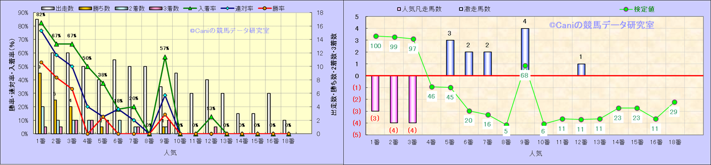 人気凡走馬:1-3番人気で着外、激走馬:5-18番人気で入着 |