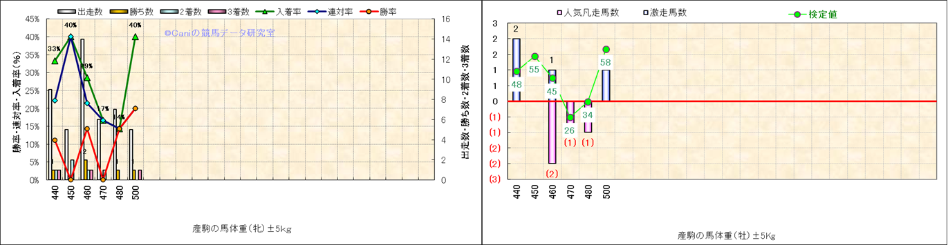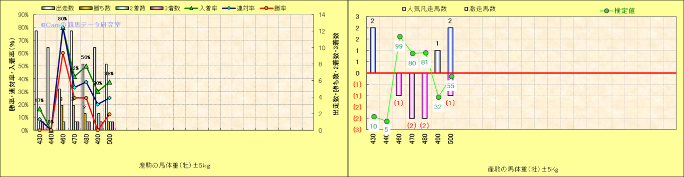 牡産駒の体重別成績-近3年- |