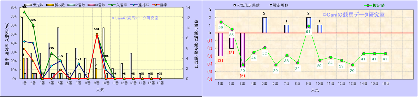 人気凡走馬:1-3番人気で着外、激走馬:5-18番人気で入着 |