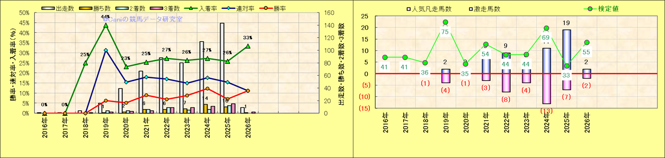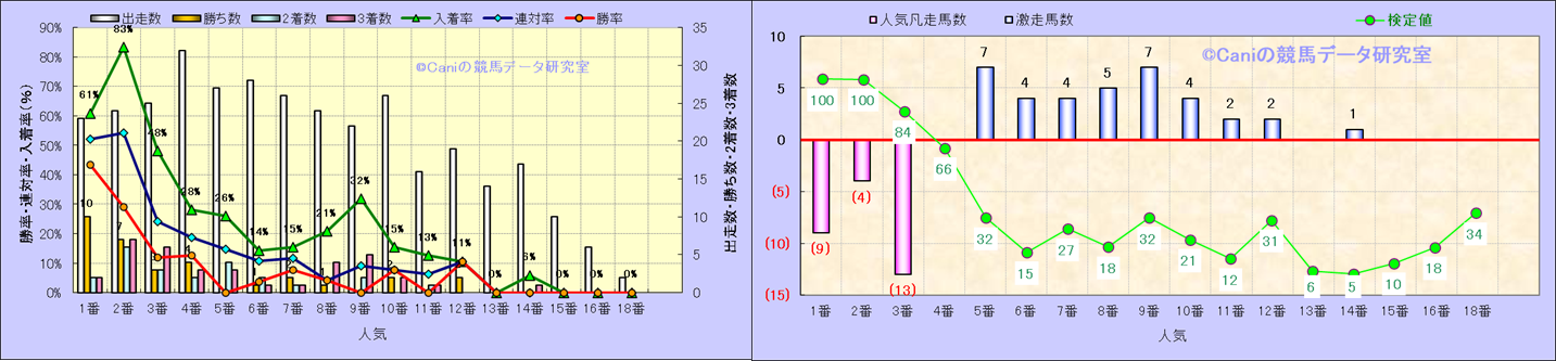 人気凡走馬:1-3番人気で着外、激走馬:5-18番人気で入着 |