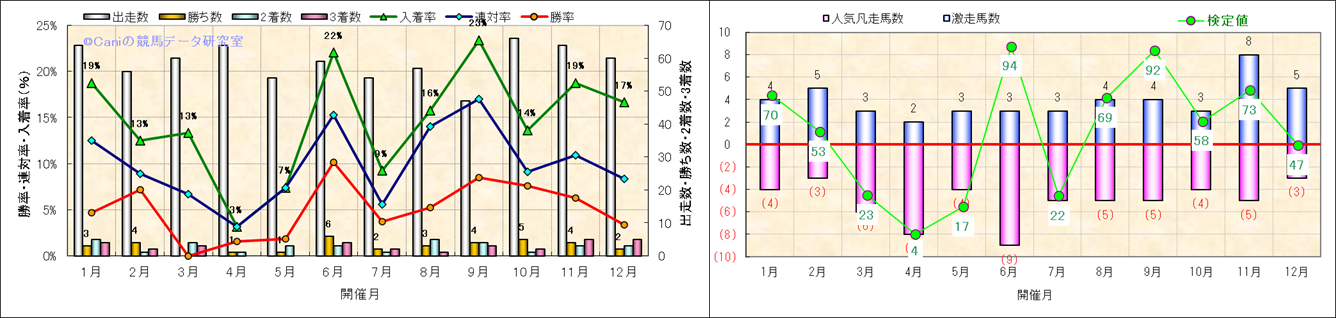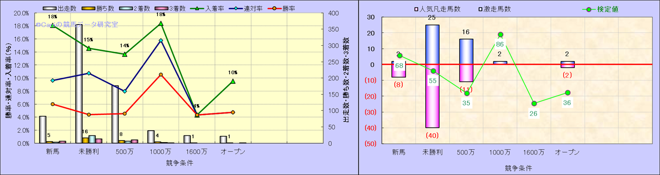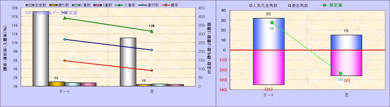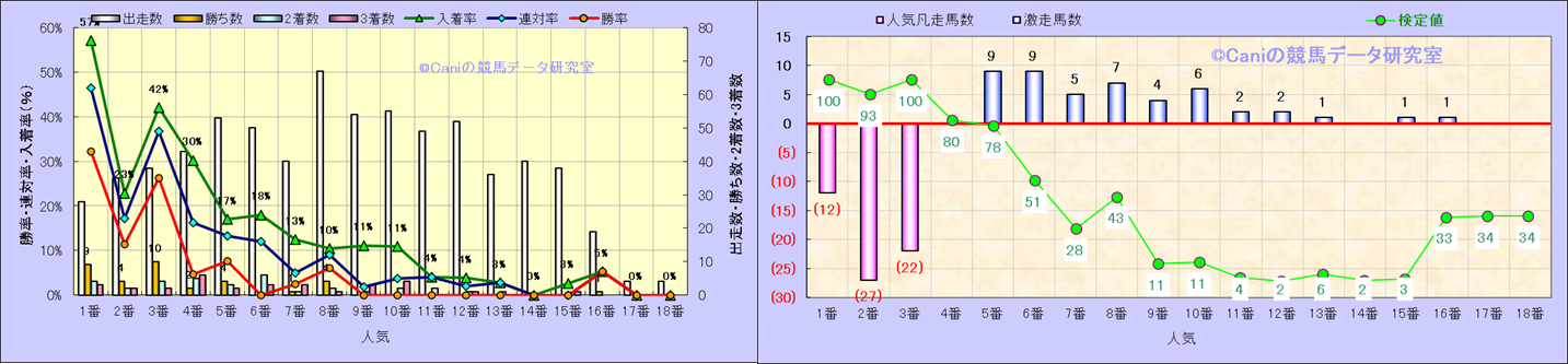 人気凡走馬:1-3番人気で着外、激走馬:5-18番人気で入着 |