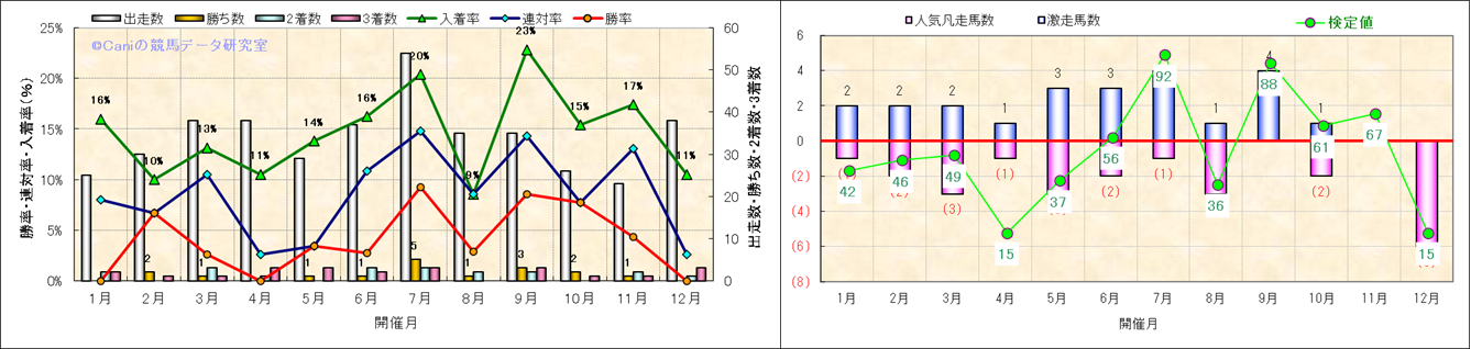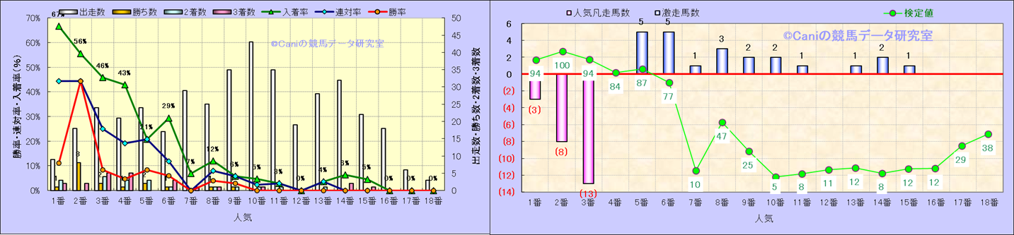 人気凡走馬:1-3番人気で着外、激走馬:5-18番人気で入着 |