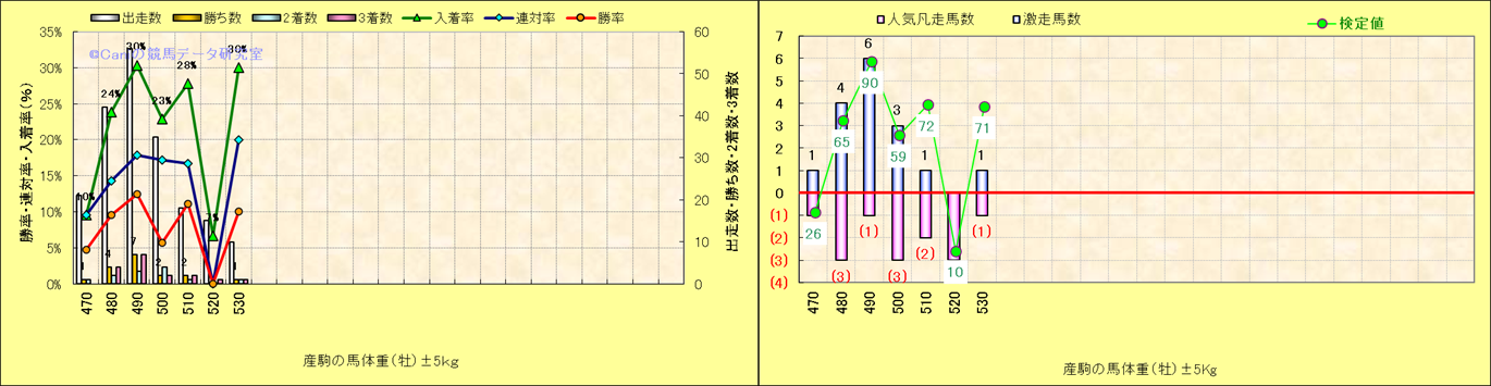 牡産駒の体重別成績-近3年- |