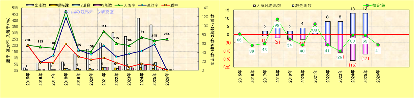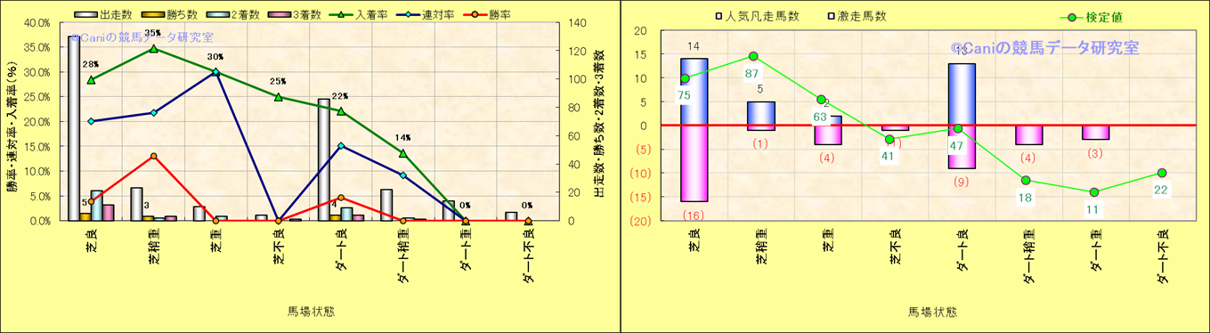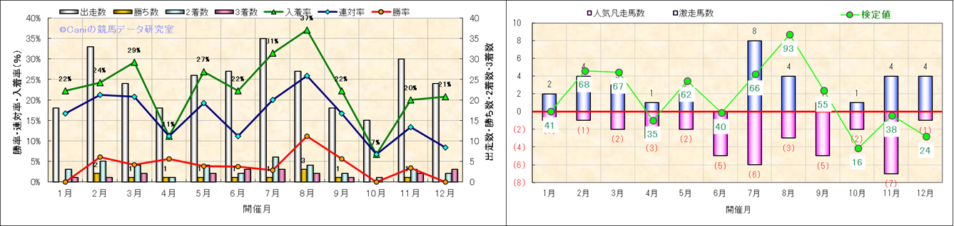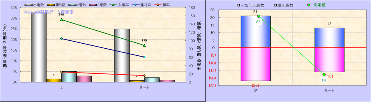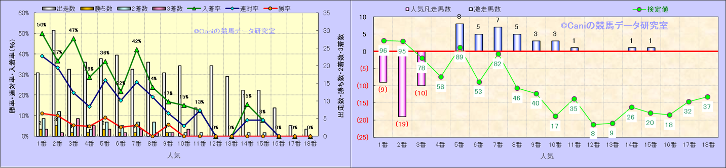 人気凡走馬:1-3番人気で着外、激走馬:5-18番人気で入着 |