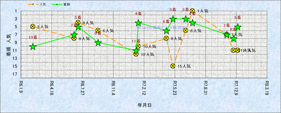 近走における4コーナーでの位置取りと上がり順位(頭数補正後) |