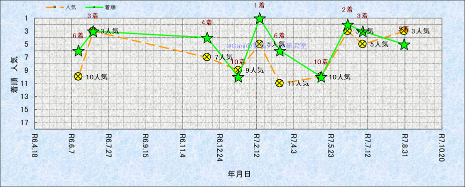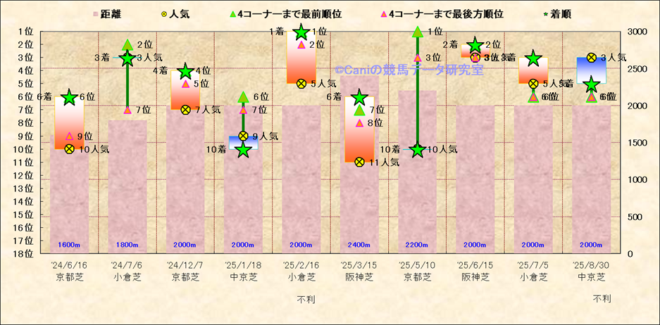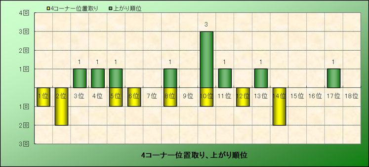 脚質解析 近20レースの4コーナーでの位置取りと上がり順位(頭数補正後) |