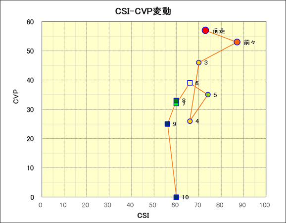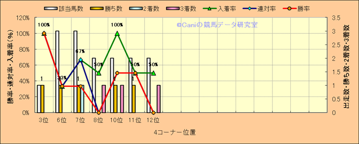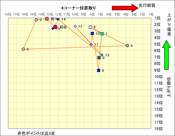 近走における4コーナーでの位置取りと上がり順位(頭数補正後) |