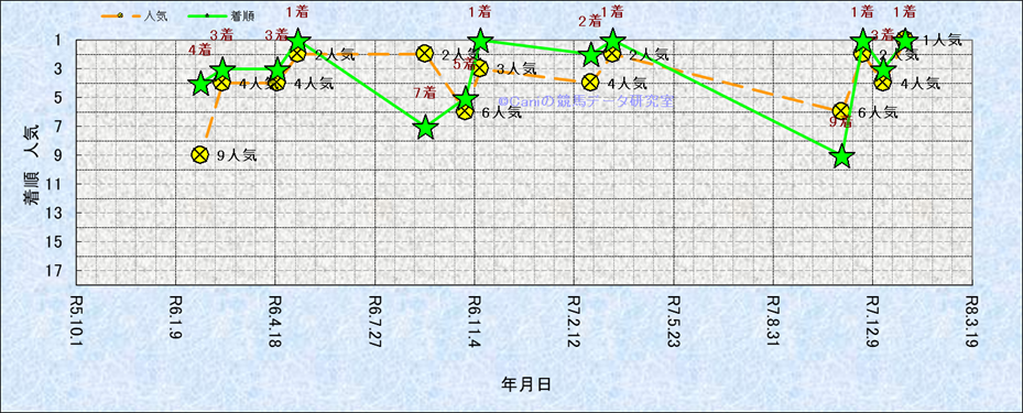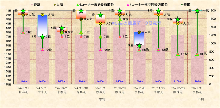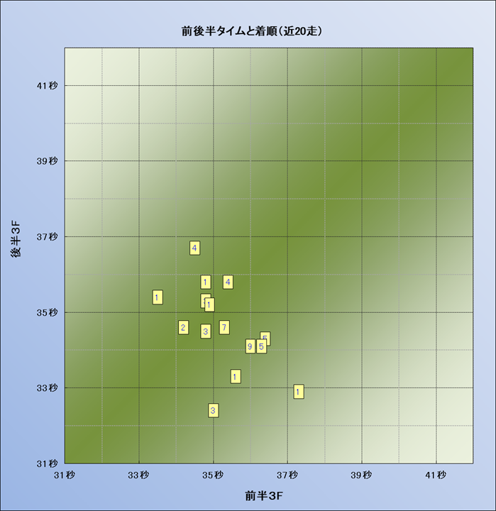 脚質解析 近20レースの4コーナーでの位置取りと上がり順位(頭数補正後) |