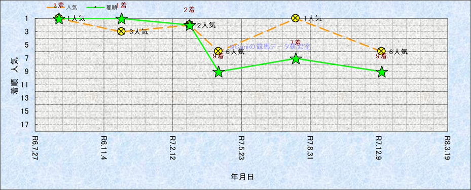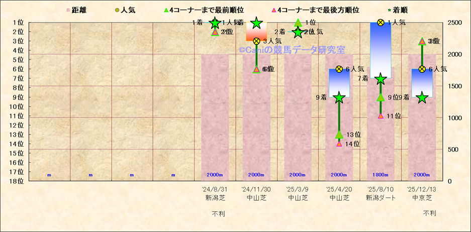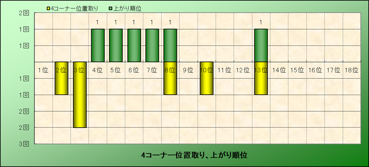 脚質解析 近20レースの4コーナーでの位置取りと上がり順位(頭数補正後) |