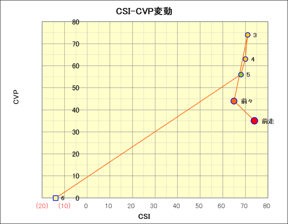 近走における4コーナーでの位置取りと上がり順位(頭数補正後) |