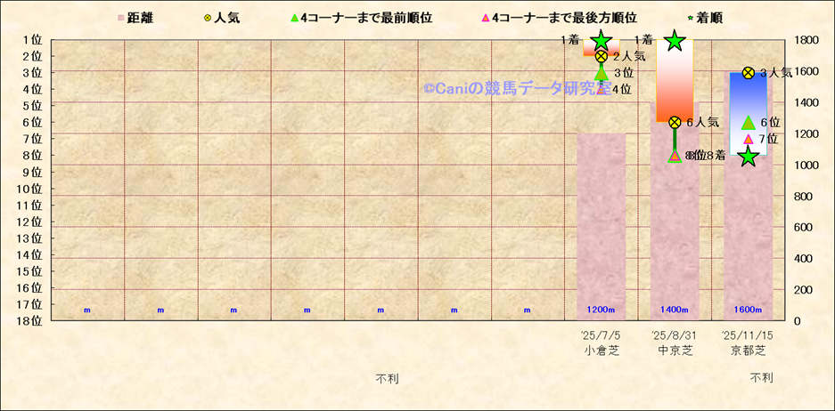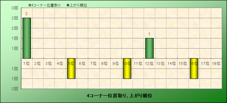 脚質解析 近20レースの4コーナーでの位置取りと上がり順位(頭数補正後) |