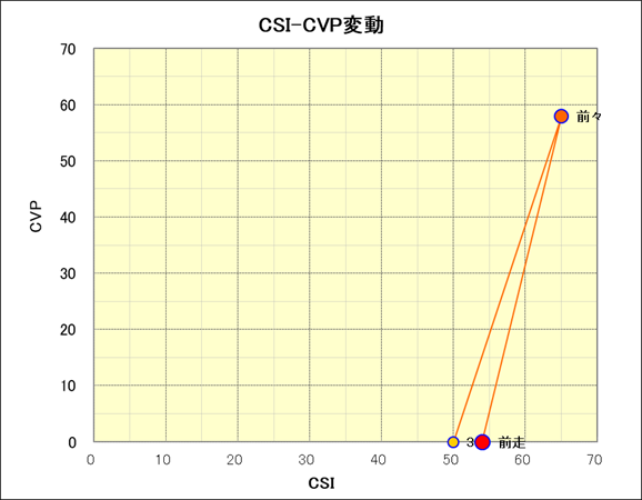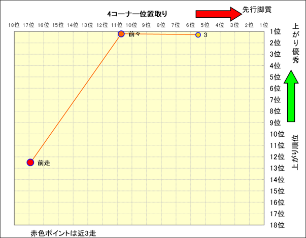 近走における4コーナーでの位置取りと上がり順位(頭数補正後) |