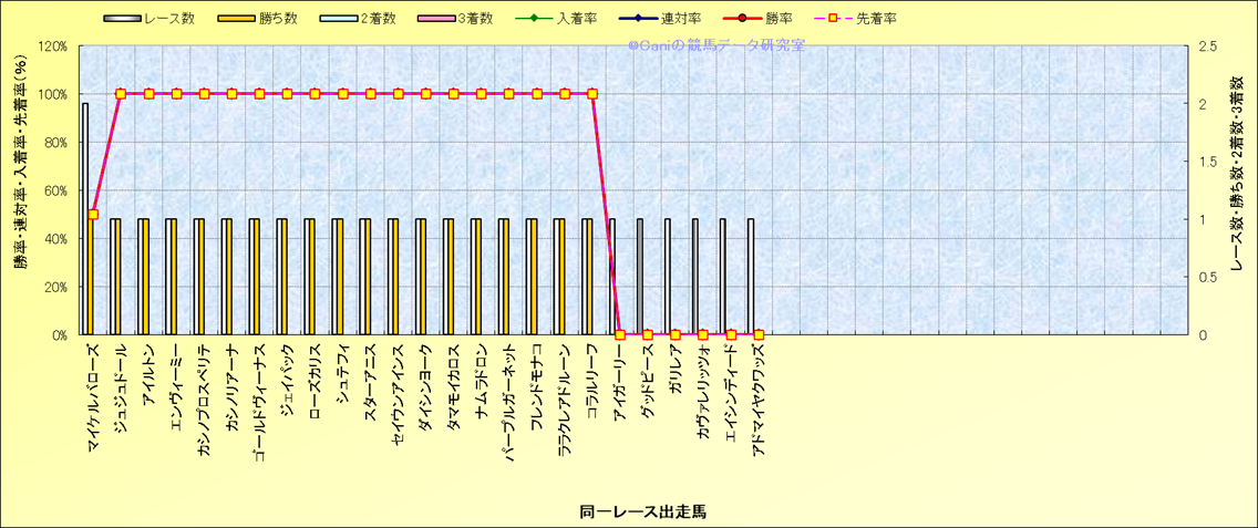 ライバル(相性)解析 同一レースに下記馬が出走した場合の成績とその馬に先着する先着率 |