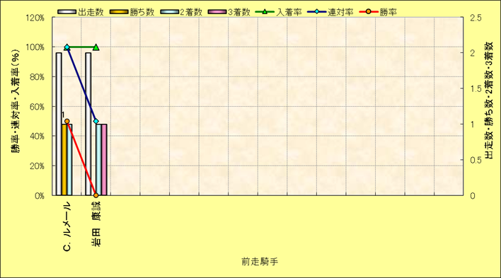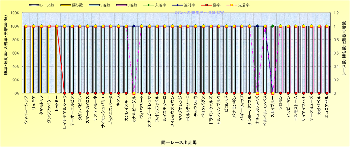 ライバル(相性)解析 同一レースに下記馬が出走した場合の成績とその馬に先着する先着率 |