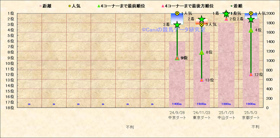 脚質解析 近20レースの4コーナーでの位置取りと上がり順位(頭数補正後) |