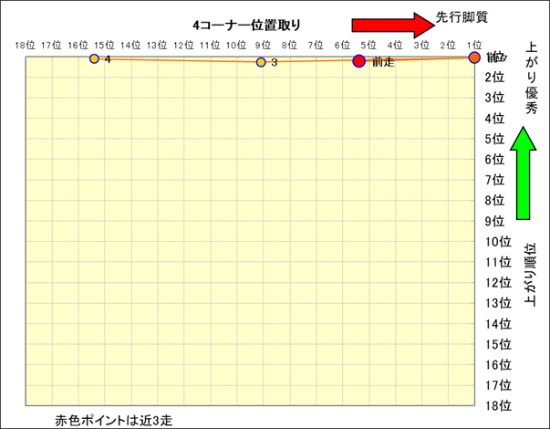 近走における4コーナーでの位置取りと上がり順位(頭数補正後) |