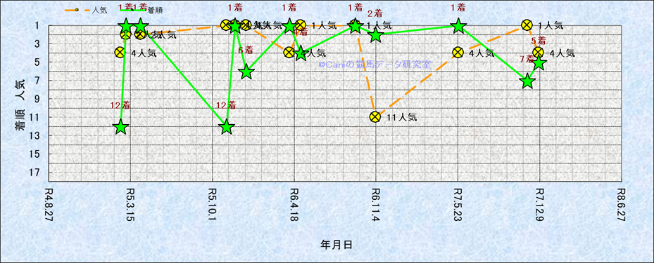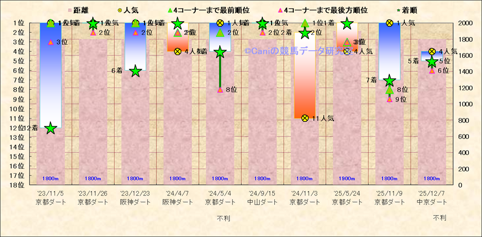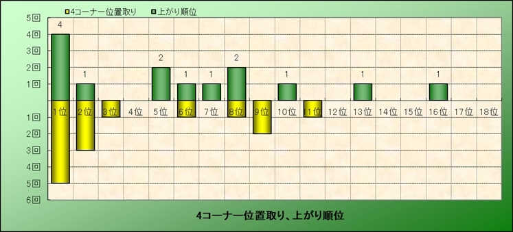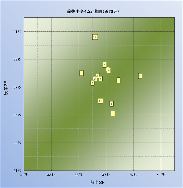 脚質解析 近20レースの4コーナーでの位置取りと上がり順位(頭数補正後) |