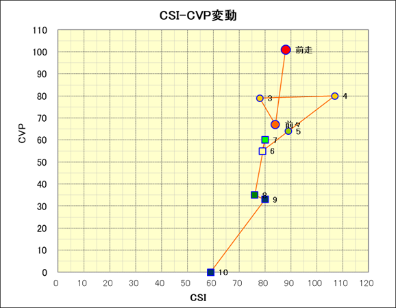 近走における4コーナーでの位置取りと上がり順位(頭数補正後) |