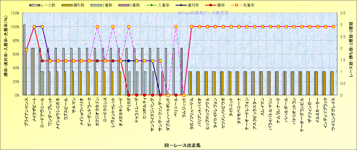 ライバル(相性)解析 同一レースに下記馬が出走した場合の成績とその馬に先着する先着率 |
