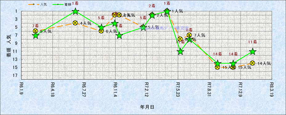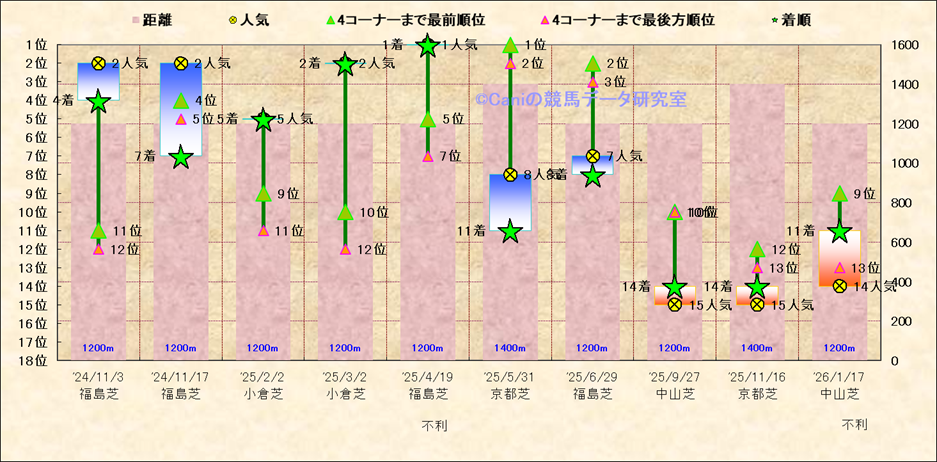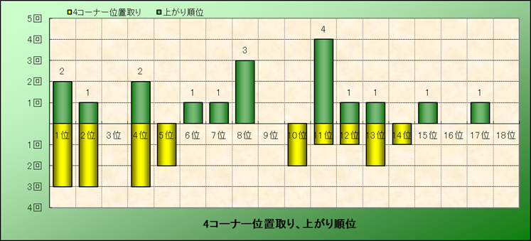 脚質解析 近20レースの4コーナーでの位置取りと上がり順位(頭数補正後) |
