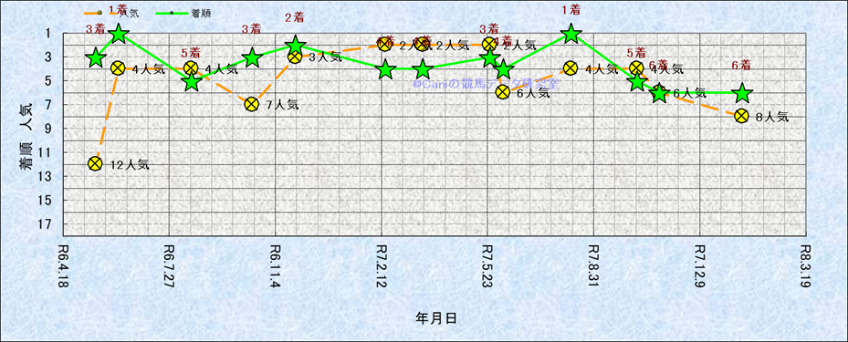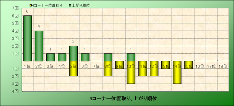 脚質解析 近20レースの4コーナーでの位置取りと上がり順位(頭数補正後) |