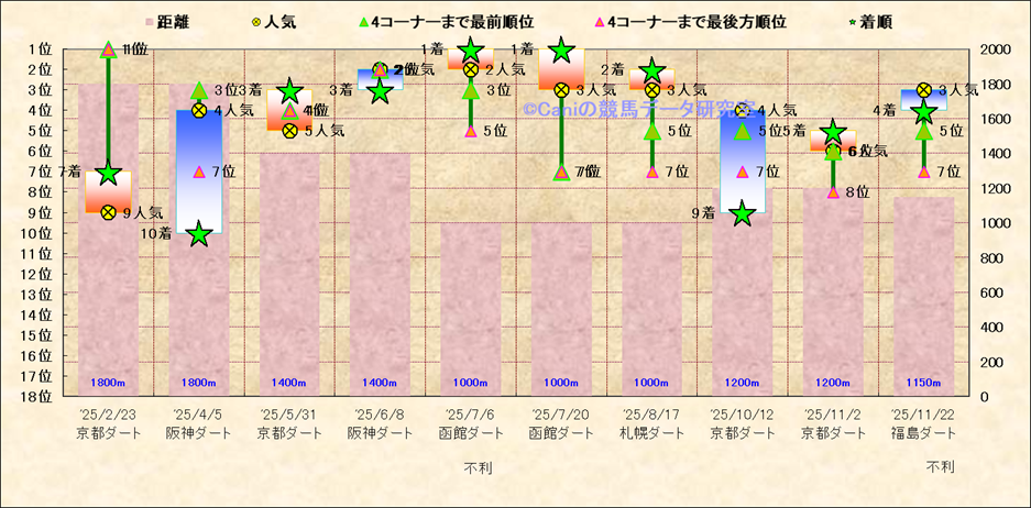 近10走 人気−着順-位置取りの推移 |