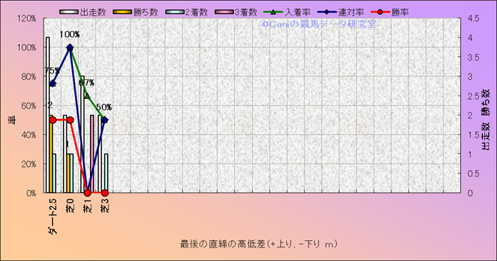 コース、最後の直線の高低差別成績(平地) |