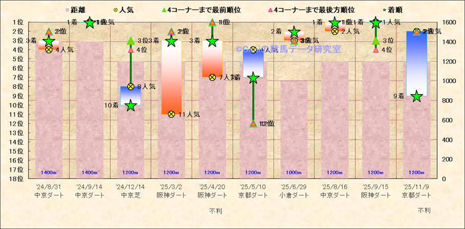 近10走 人気−着順-位置取りの推移 |
