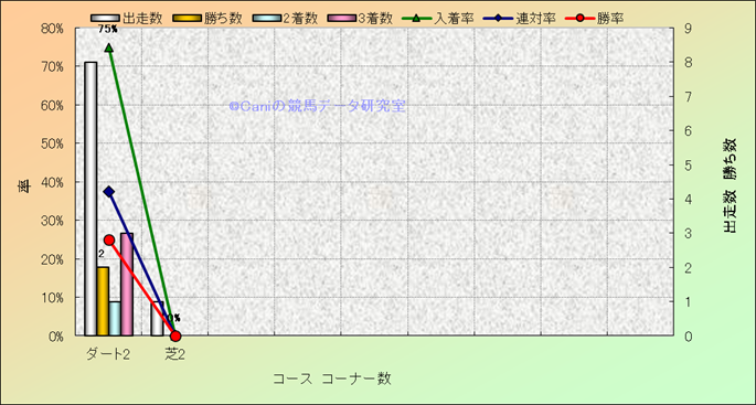 コース、コーナー数別成績(平地) |