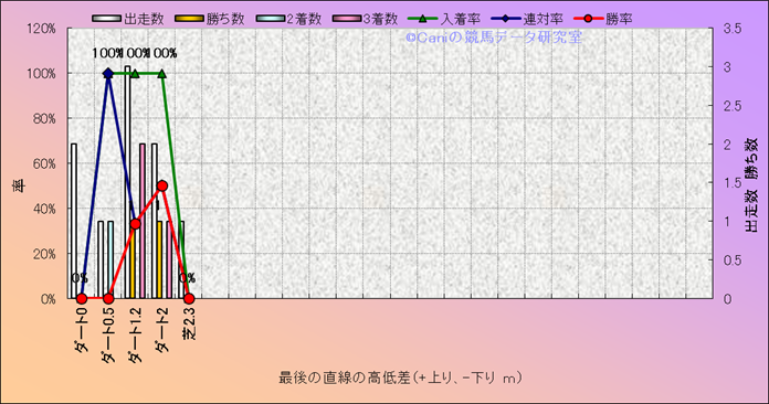 コース、最後の直線の高低差別成績(平地) |
