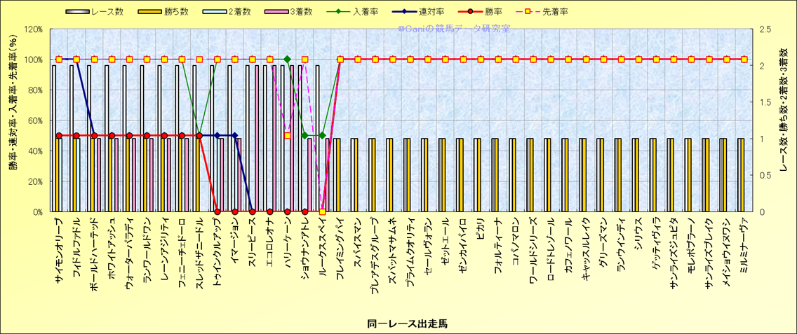 ライバル(相性)解析 同一レースに下記馬が出走した場合の成績とその馬に先着する先着率 |