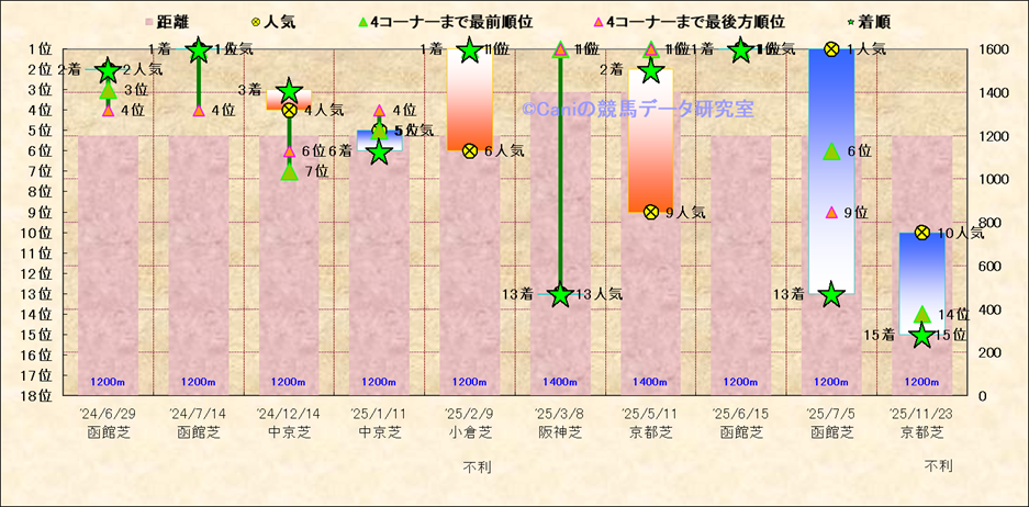 近10走 人気−着順-位置取りの推移 |