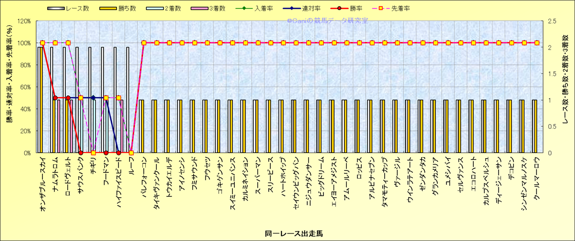 ライバル(相性)解析 同一レースに下記馬が出走した場合の成績とその馬に先着する先着率 |
