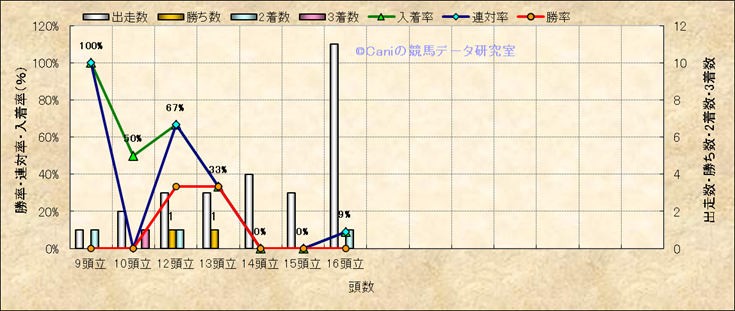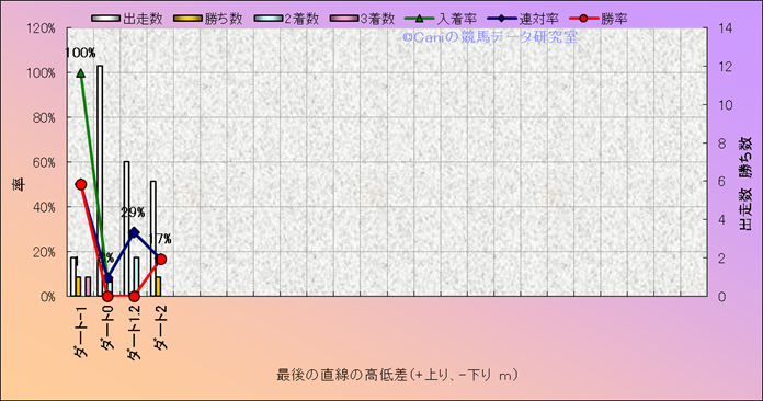 コース、最後の直線の高低差別成績(平地) |