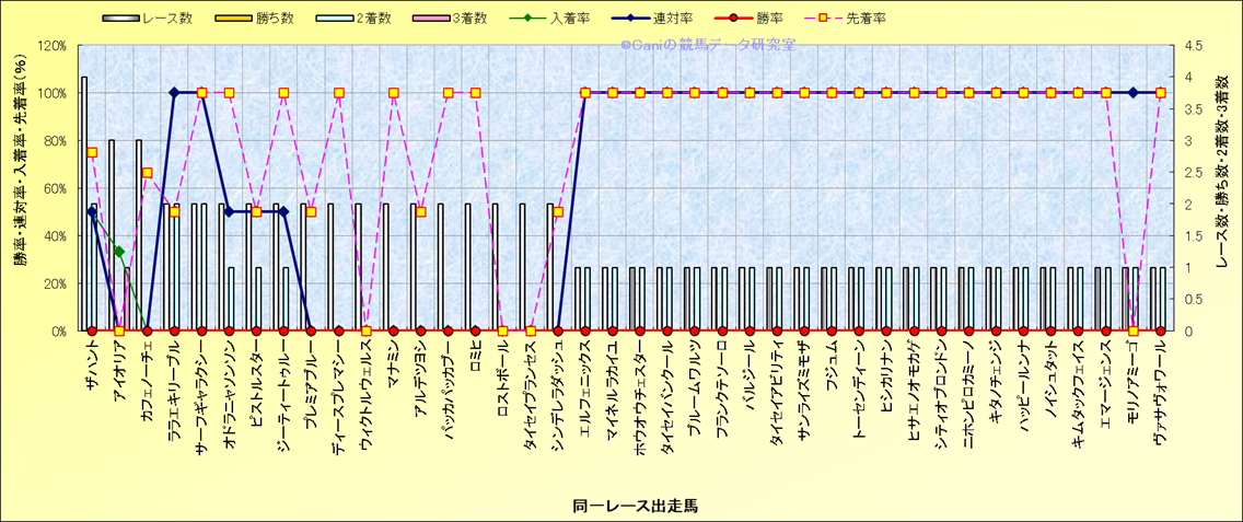 ライバル(相性)解析 同一レースに下記馬が出走した場合の成績とその馬に先着する先着率 |