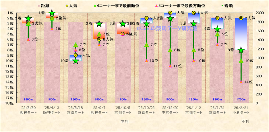 近10走 人気−着順-位置取りの推移 |