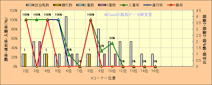 近走における4コーナーでの位置取りと上がり順位(頭数補正後) |